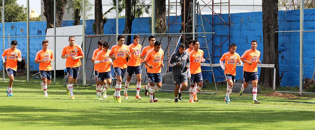 Minutos después de las diez de la mañana y en la cancha dos de sus instalaciones de Verde Valle, el Rebaño Sagrado comenzó su práctica con una entrada en calor dinámica, consistente en trote alrededor del campo y labores de frecuencia para poner el físico a tono para la actividad de futbol programada por el Cuerpo Técnico para este domingo.