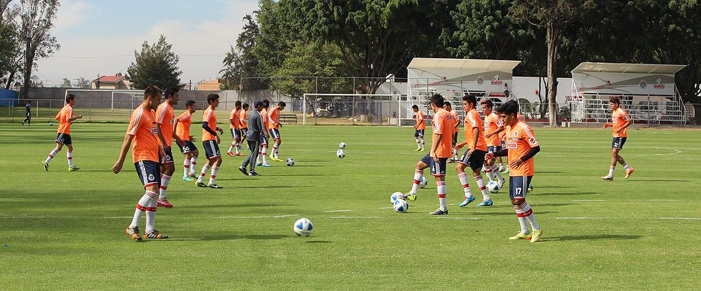Por su parte, los jugadores con menor participación, junto a los integrantes del equipo filial Sub 20, trabajaron en la cancha Fausto Prieto, donde comenzaron la práctica con una serie de estiramientos, ejercicios de coordinación y golpeo del esférico en parejas como calentamiento.