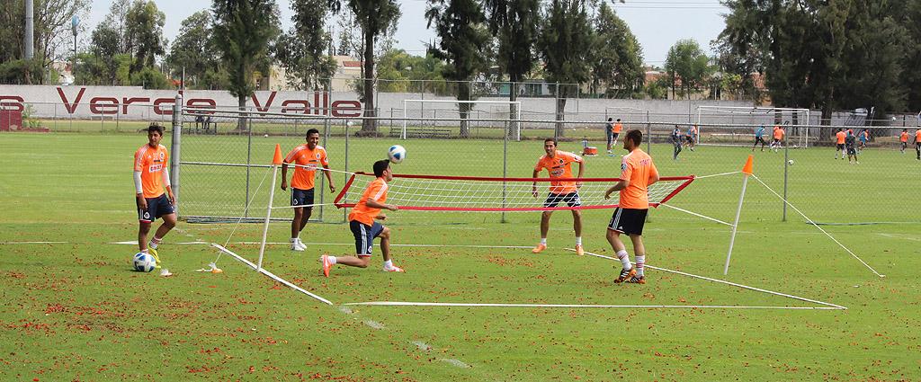 Por su parte, otros jugadores pasaron a la cancha Fausto Prieto para realizar un trabajo aeróbico con trote alrededor del campo y posteriormente disputar una competencia de tenis-balón, misma a la que se unieron los integrantes del conjunto de Chivas Rayadas, de la Segunda División, en una buena convivencia entre los jugadores de la institución rojiblanca.