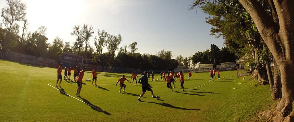 Mientras los guardametas hicieron su calentamiento y actividad específica con la supervisión del Entrenador de Porteros Luis Valls, el resto de los elementos del cuadro tapatío llevaron a cabo un trabajo aeróbico libre en una mitad del campo, combinado con ejercicios de movilidad, lo cual los puso a tono para la siguiente encomienda, que consistió en una competencia de posesión de balón a dos toques en espacio medio, con cinco porterías distribuidas dentro de la cancha, misma que exigió la máxima concentración de cada uno de los participantes.
