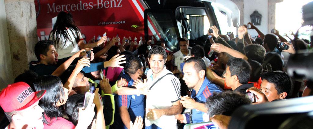 Entre la tumultosa afición, cada uno de los integrantes de Chivas trató de abrirse paso para buscar el ingreso al recinto de concentración, cobijado por su afición y coronado por los destellos de los flashes que con cada paso acompañaron a todos los elementos rojiblancos, incluidos el Cuerpo Técnico y el Staff del cuadro tapatío.