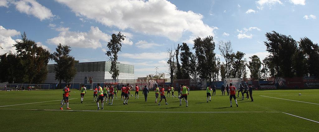 Tras dicha encomienda, el conjunto más mexicano y popular del país quedó a las órdenes del entrenador José Manuel de la Torre, quien dirigió un ejercicio futbolístico en la totalidad del terreno de juego, el cual se extendió por alrededor de 45 minutos, pues el estratega rojiblanco hizo constante énfasis en los recorridos que requiere que sus pupilos hagan en determinados momentos del partido para procurar ser un cuadro sólido y efectivo en todas sus líneas.