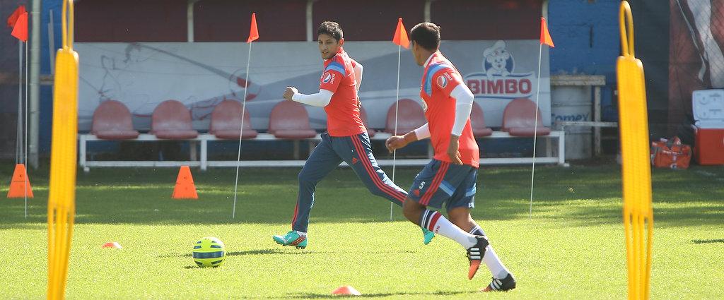 Enseguida los jugadores rojiblancos fueron divididos en dos grupos para realizar actividades alternadas, ya que mientras un grupo realizó un trabajo de fuerza y de potencia en el gimnasio, el otro permaneció en la cancha para llevar a cabo un ejercicio futbolístico bajo el mando de José Manuel de la Torre.