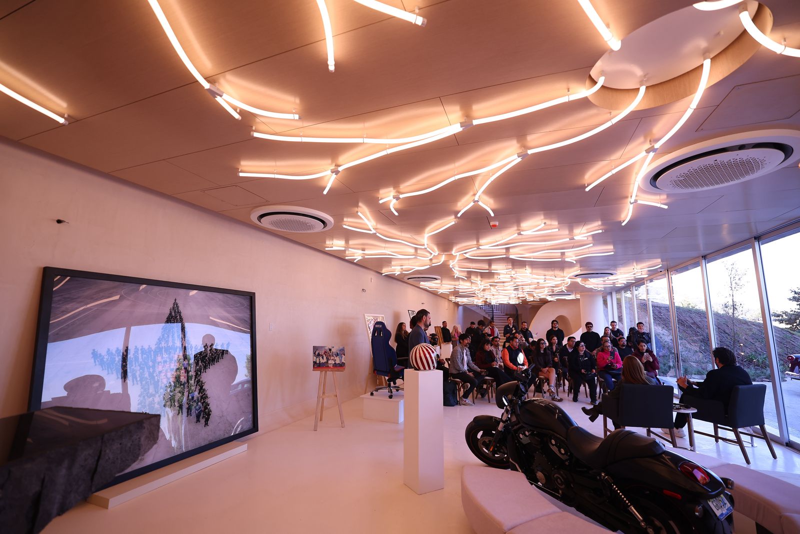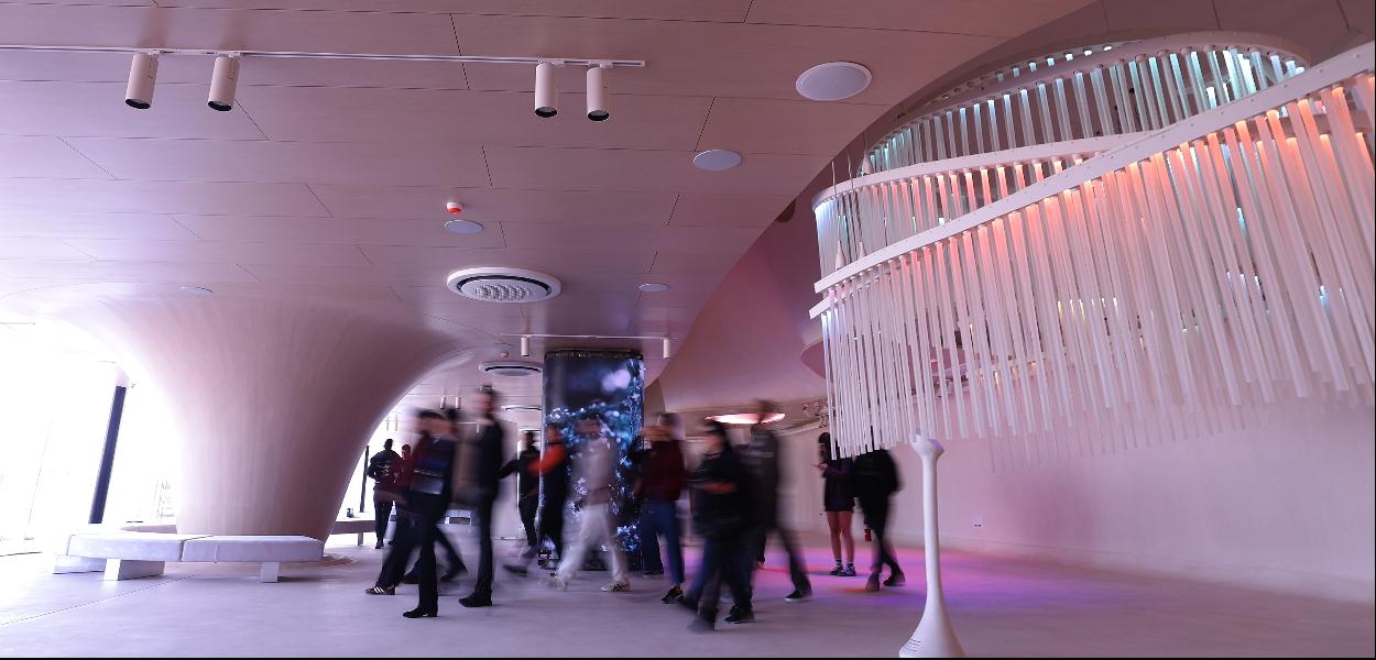 JOVEM cuenta con espacios que transmiten energía y emoción: una sala inmersiva, la sala principal, un túnel, un jardín y hasta un mirador que se abre al Bosque de la Primavera. Cada uno fue diseñado para que los visitantes vivan el espacio y puedan reflexionar sobre sus sueños.
